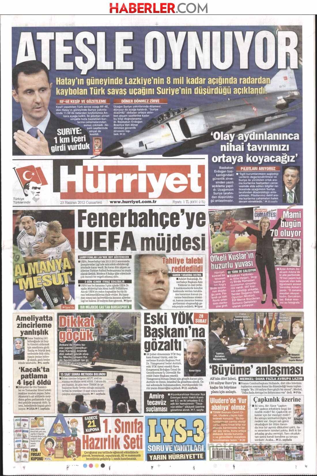 «Η Συρία κατέρριψε το αεροσκάφος μας τύπoυ RF-4» είναι ο τίτλος της Habertürk η